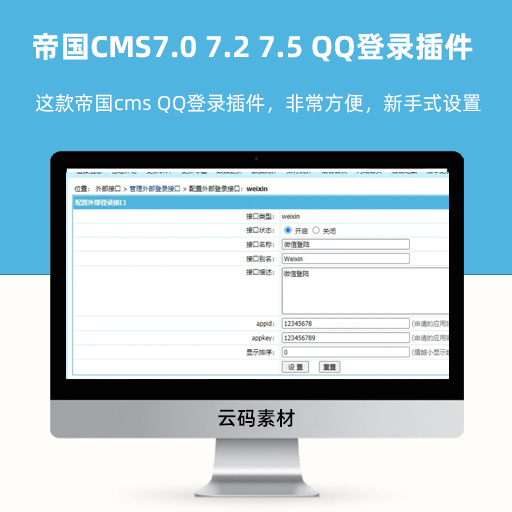 帝国CMS7.5 7.2 QQ一键登录插件 GBK+UTF-8版本