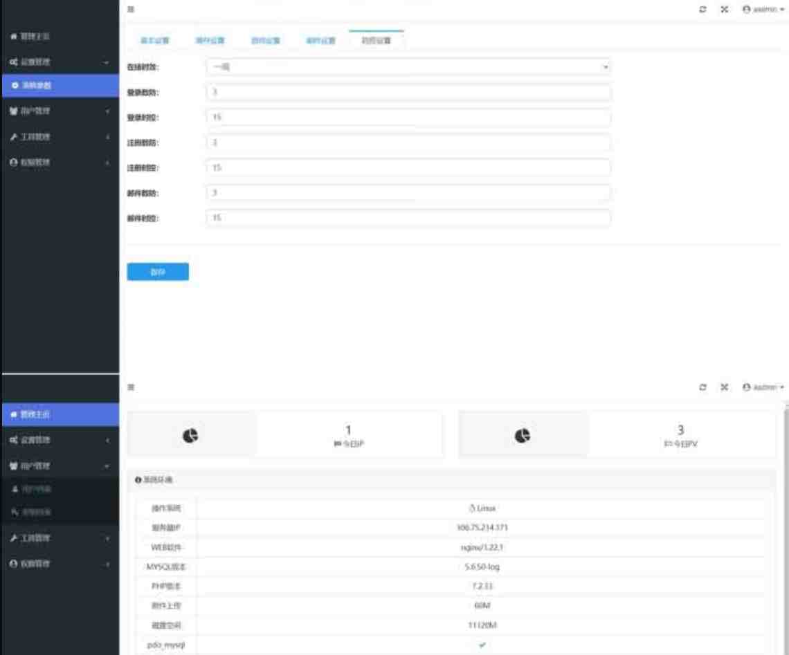 后台功能:ip访问统计、sql命令工具、升级模块、管理员模块、会员模块、卡密模块