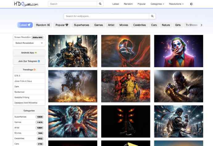 Hdqwalls 一个专门提供高质量壁纸的网站