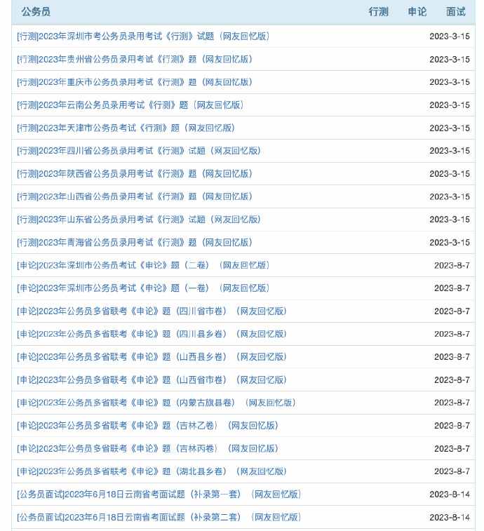 公开真题库 公务员、事业单位、教师资格等考试真题题库资源