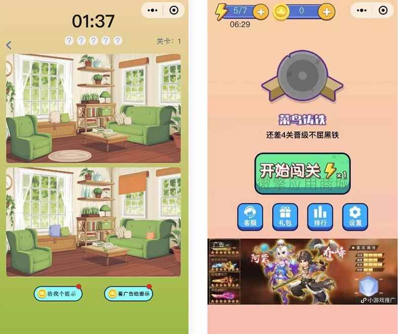 微信小程序游戏一起来找茬 找不同小程序源码 挑战视力与注意力的益智游戏!