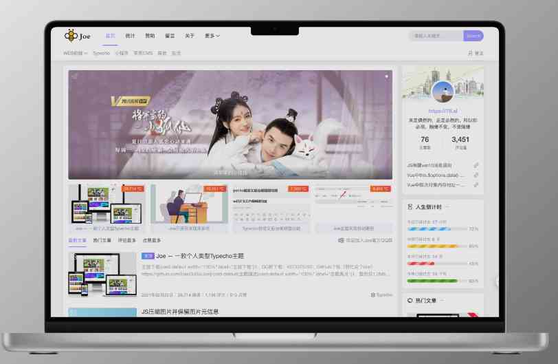 Typecho博客 自媒体主题模板源码 精美设计完整版 Joe博客模板