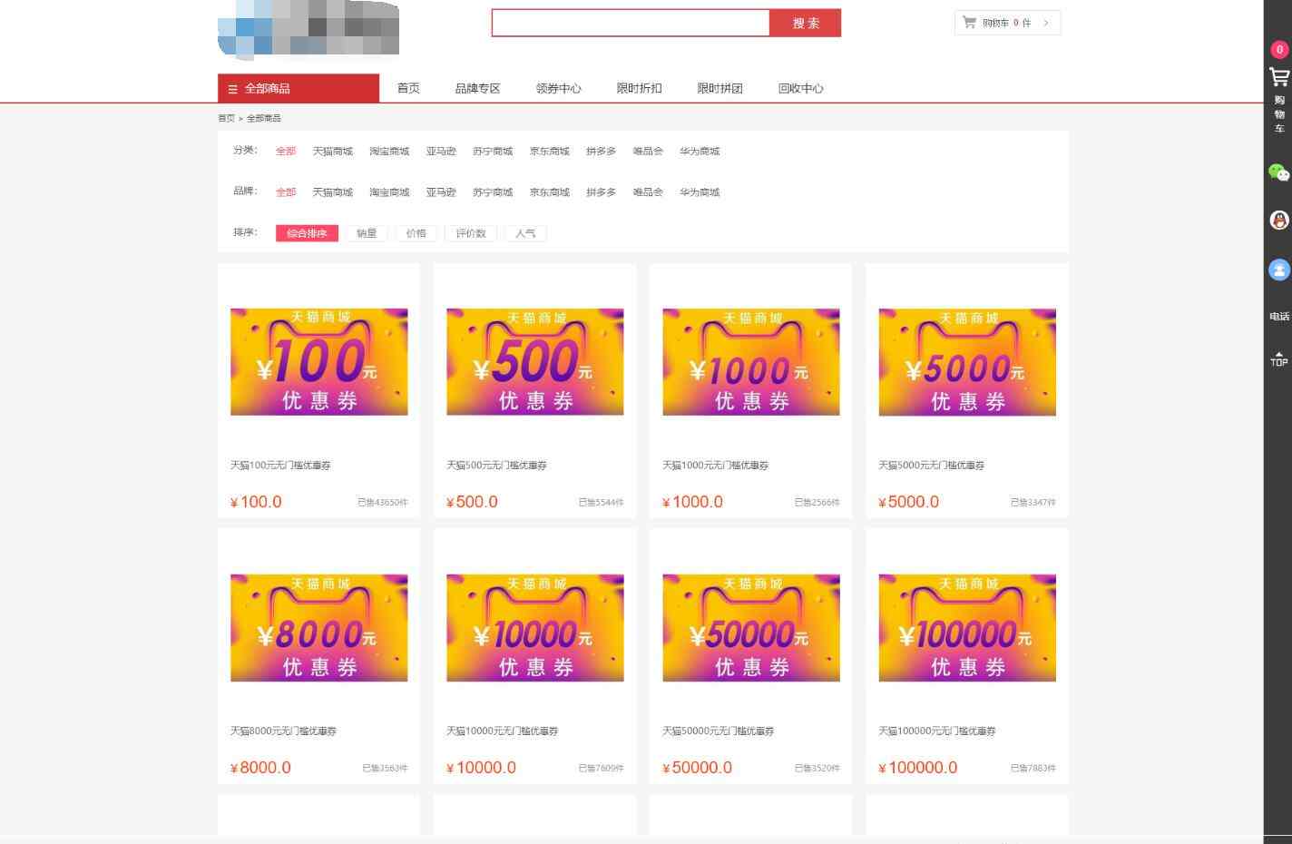 各大电商平台优惠券秒杀拼团限时折扣回收商城带余额宝