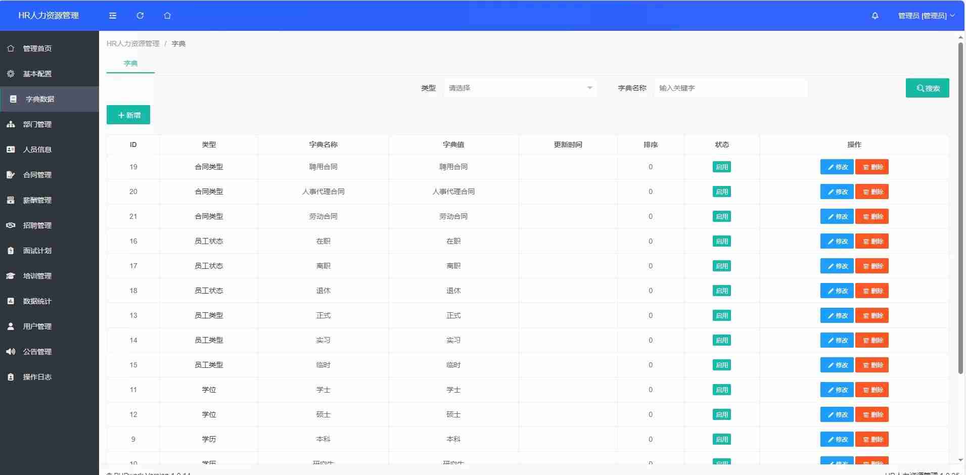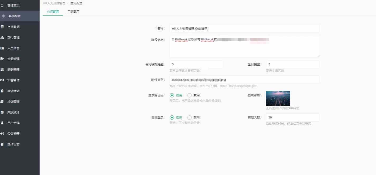 非常全面的一款HR人力资源系统,后台可以管理合同、薪资、员工、部门、招聘、面试、培训、数据统计等等