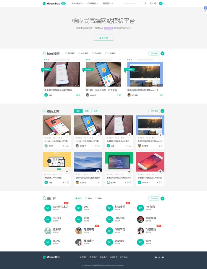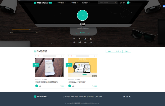页面很美观,堪比大型网站的美工,而且页面做的也很人性化,用户主要分为两类(下载用户、作者)
