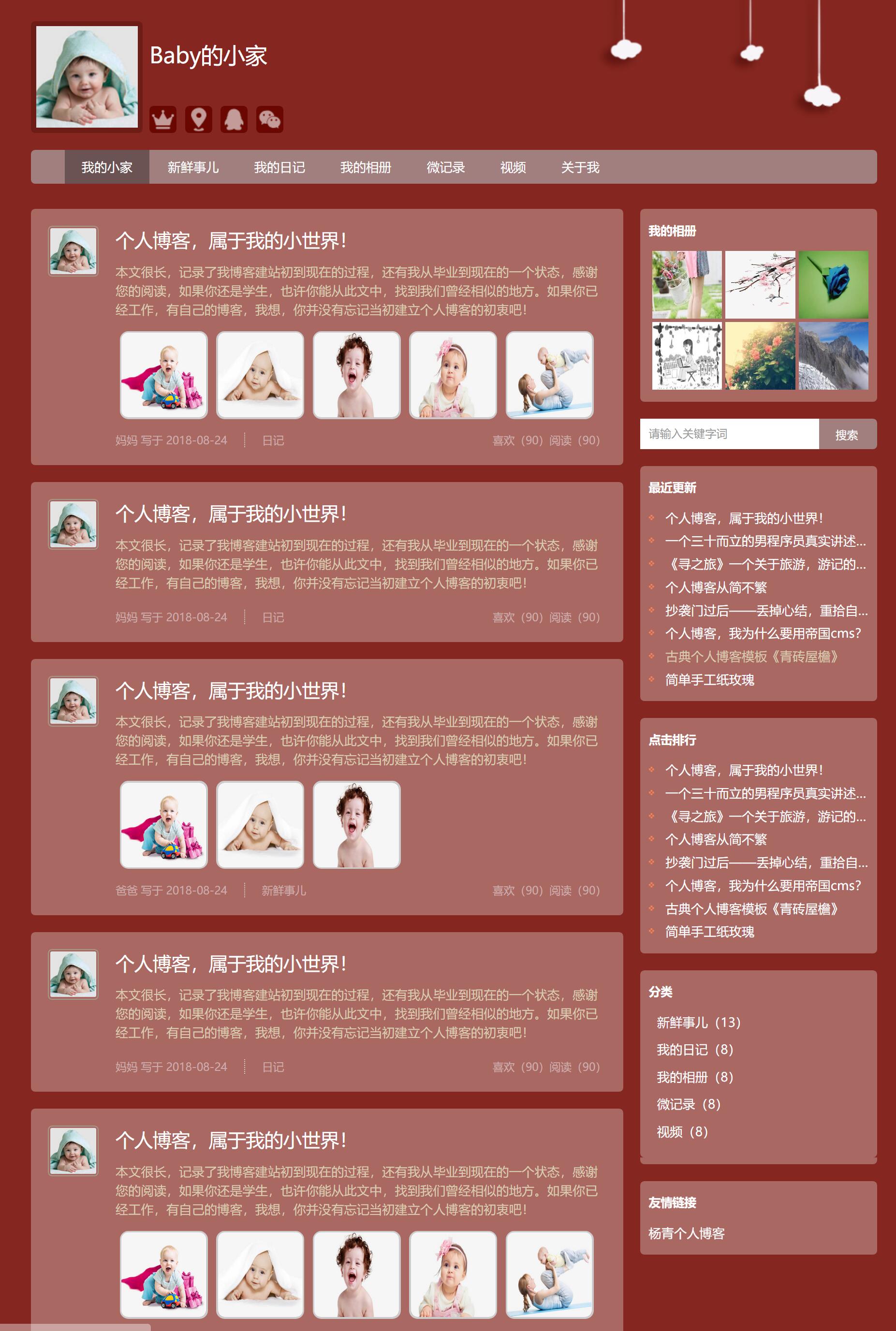 红色家庭儿童女孩记录生活个人博客模板 H5自适应博客模板,页面完整,共7个页面。