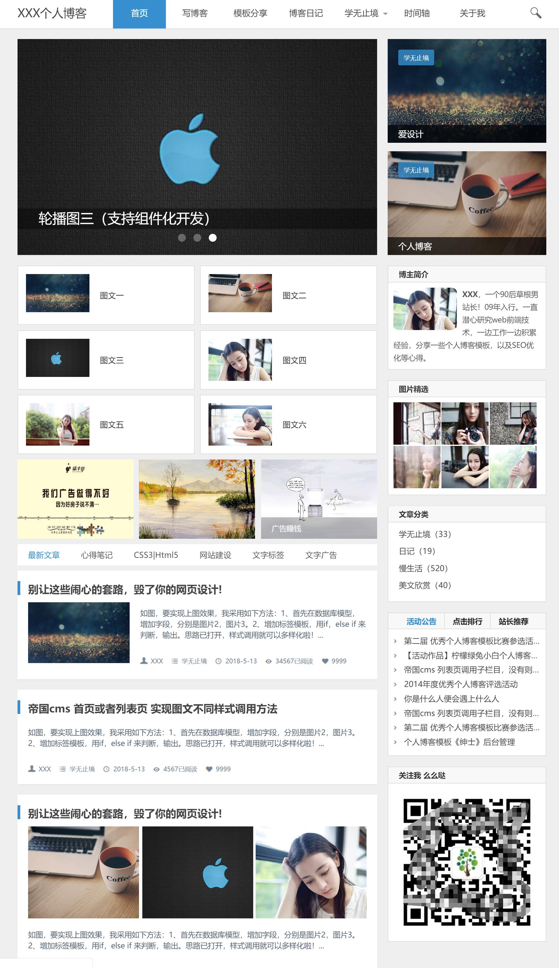 html5响应式网页前端技术交流个人博客模板,共3个页面,一个首页,一个个人介绍页,一个详情页面,html5 css3编写,自适应屏幕。