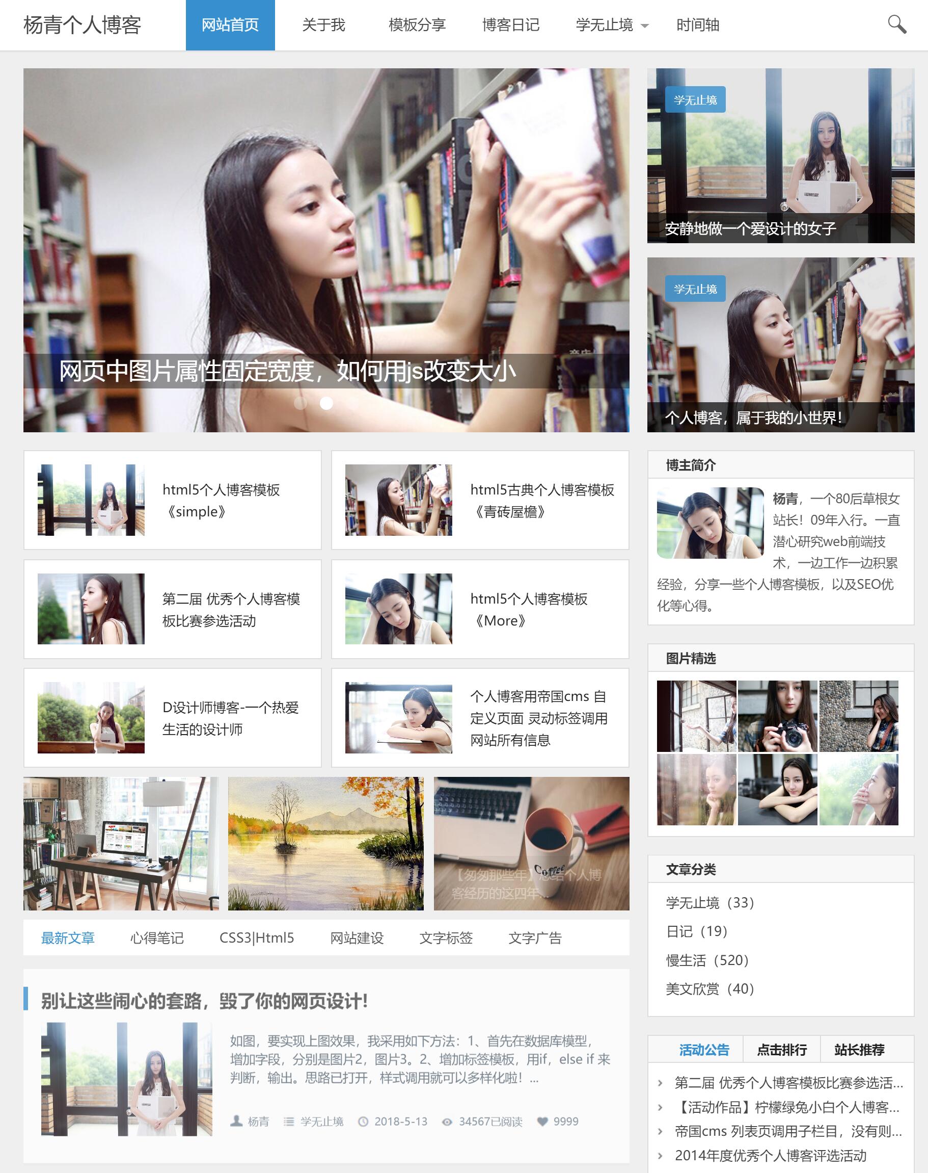 蓝色个人博客模板《show time》响应式博客模板,自动适应多终端,共7个页面。