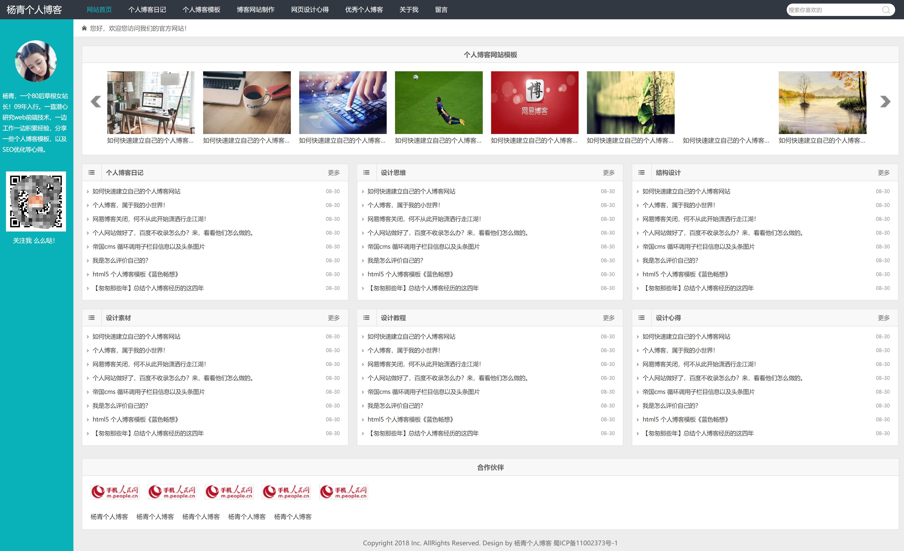 个人博客模板《tree》,宽屏响应式个人博客模板,采用冷色系为主,固定导航栏和侧边栏,无缝滚动图片等。可用作于资讯,教程,个人学习笔记,个人博客网站等。