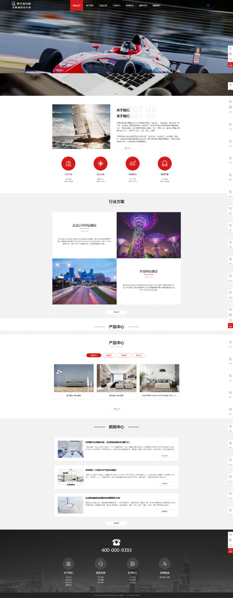 首页大图banner全屏展示,采用swiper幻灯片,支持电脑端以及手机滑动切换;关于我们板块,图文介绍的排版,以及四个图表展示,可重点突出企业形象;解决方案,采用图文并排展示方式,css3伪类nth-child实现,而非嵌入多个div;产品中心采用标签切换的方式,可实现在本页面多栏目产品的展示,直观引导客户,减少用户浏览时间成本;新闻中心采用企业大图文列表展示方式,优化手机端浏览体验。底部footer突破常规展示方式,设计简单,避免整个页面头重脚轻的布局问题。