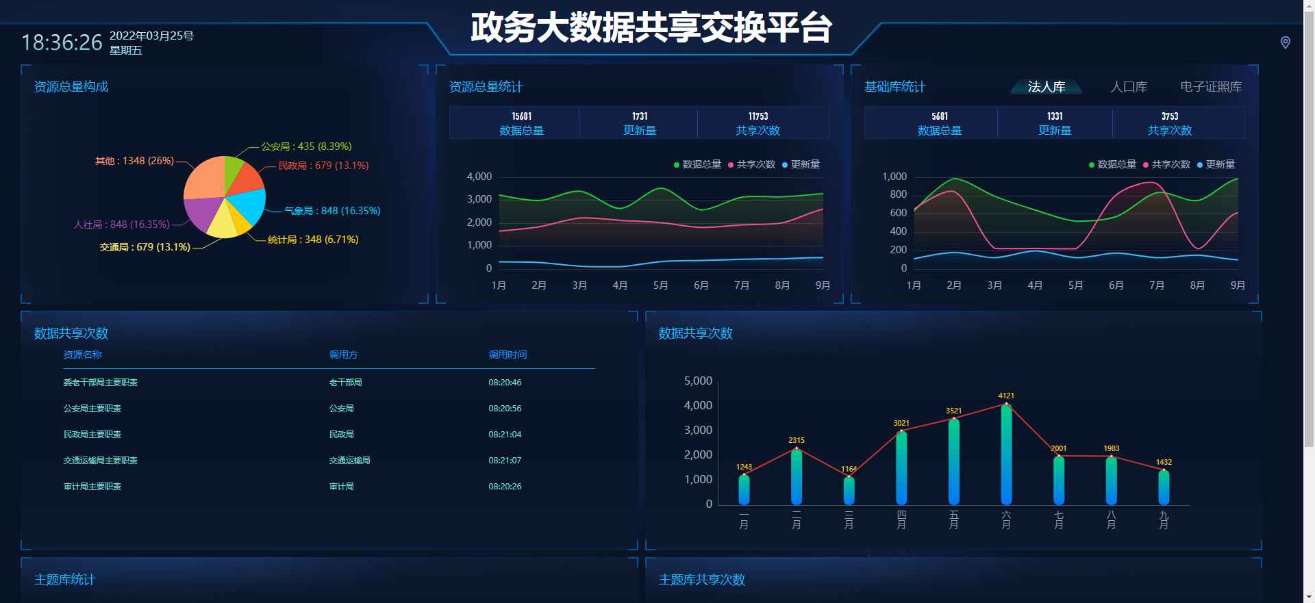 h5全屏政务大数据共享交换平台可视化大屏幕展示模板 html5+echarts