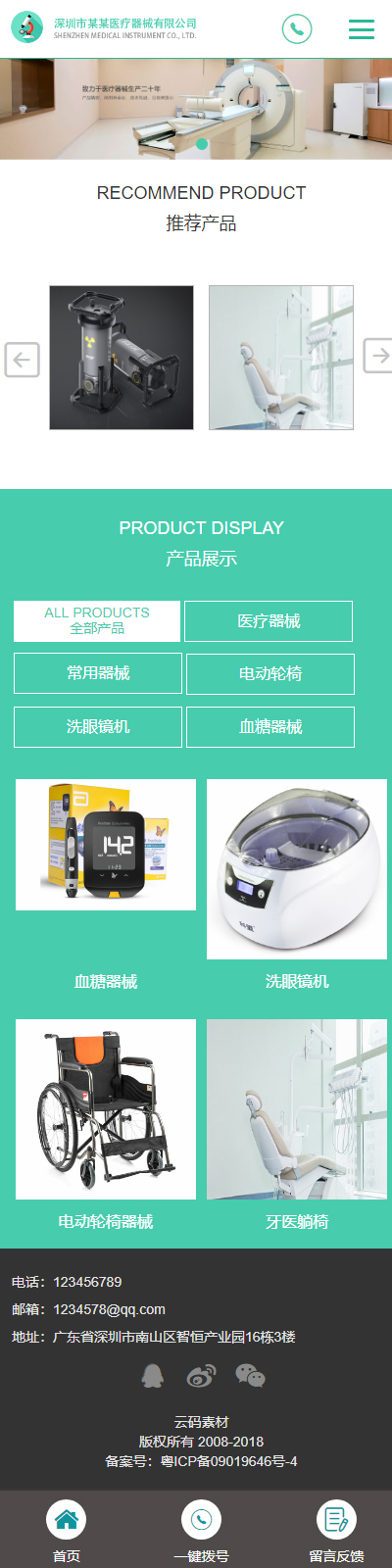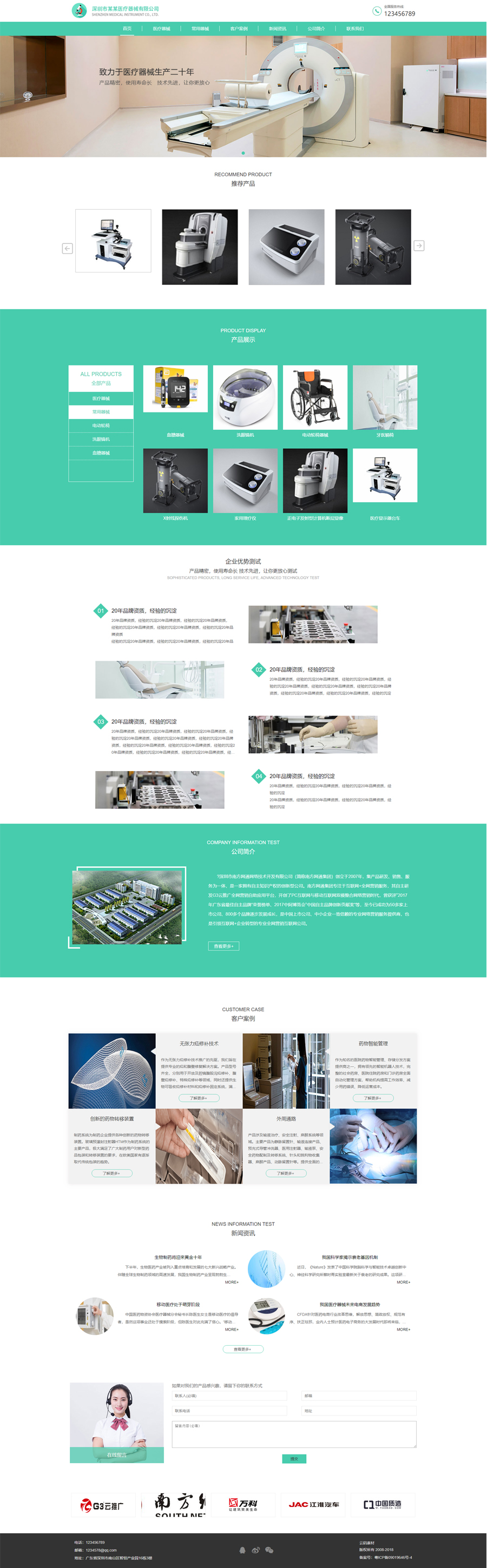 绿色精美高端大气html5响应式医疗器械设备公司网站模板,适用于机械设备企业官网模板,自适应手机移动端访问,共包含10个静态模板。