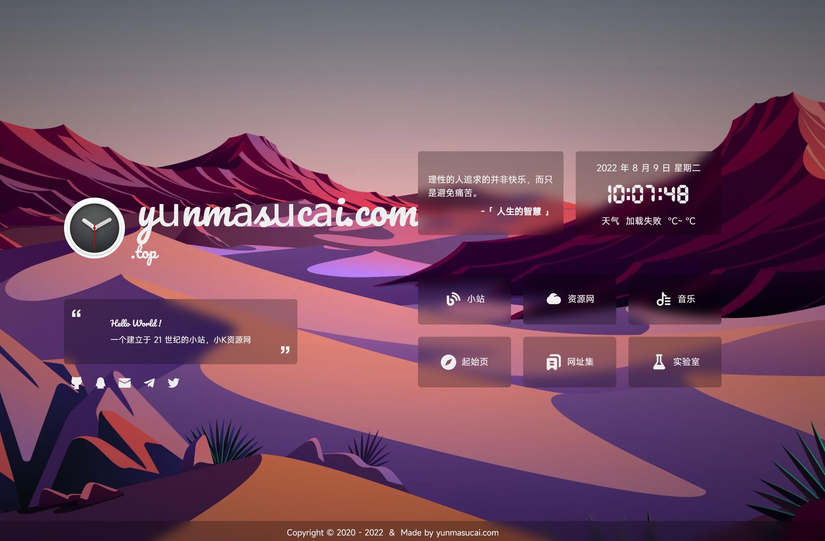 一款好看的个人主页导航html网站模板源码,简单的小主页,主页的名称字体已经过压缩,若用名称以外的字母会变回默认字体 由于 CDN 缓存原因,查看最新效果可能需要 Ctrl + F5 强制刷新浏览器缓存 载入动画,站点简介,Hitokoto 一言,日期及时间,实时天气,时光进度条,音乐播放器,移动端适配。