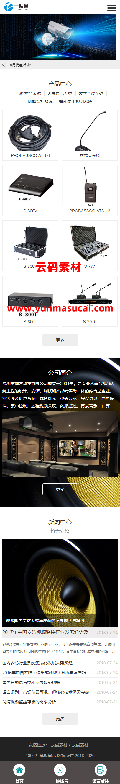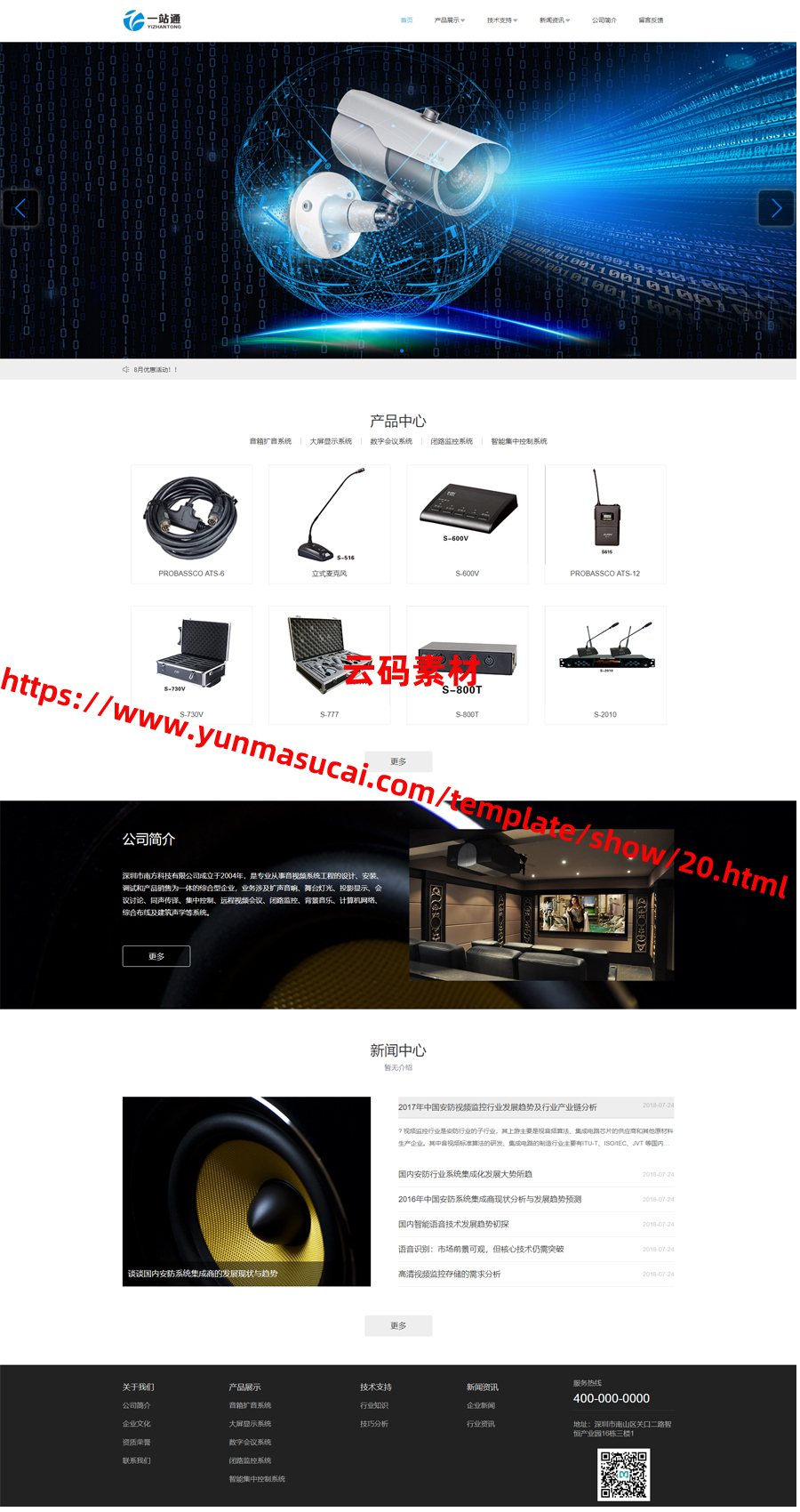 智能电子科技公司html5 css3响应式自适应网站模板,音视频系统工程设计、安装、调试和产品销售企业官网模板,共包含9个页面模板。