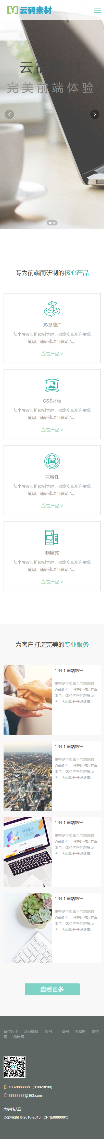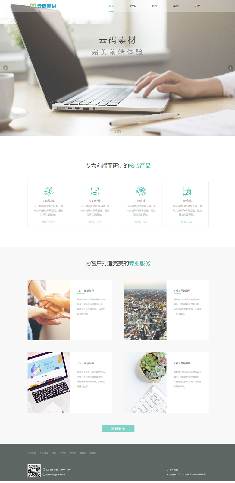 轻绿色自适应大气html5,css3响应式网站模板,可用于网络公司,科技公司,软件公司,信息公司。共包含6个页面,整站html完整模板。