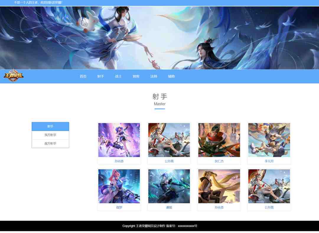 大学生王者荣耀毕设源码 王者网页模板网站使用技术: