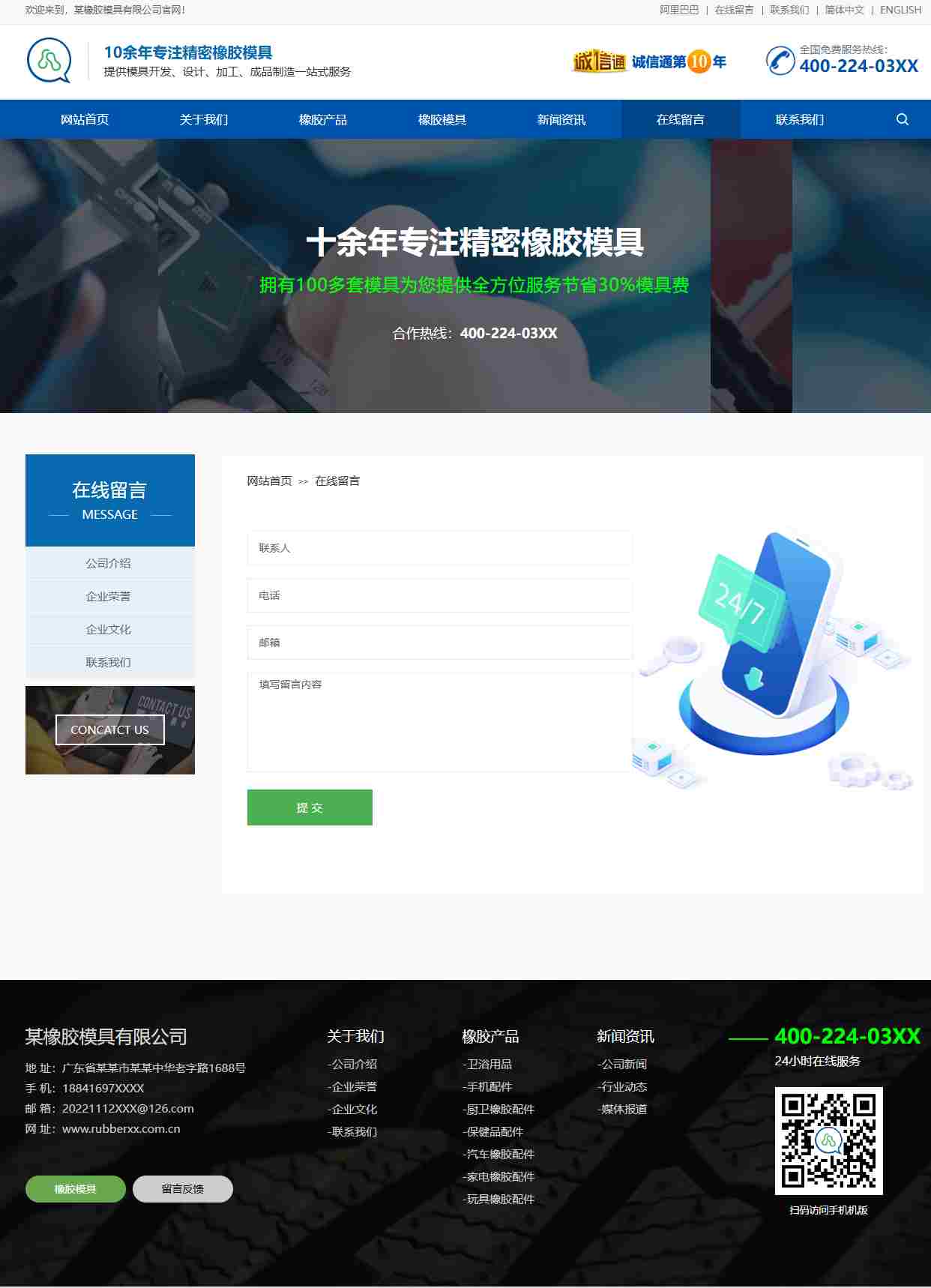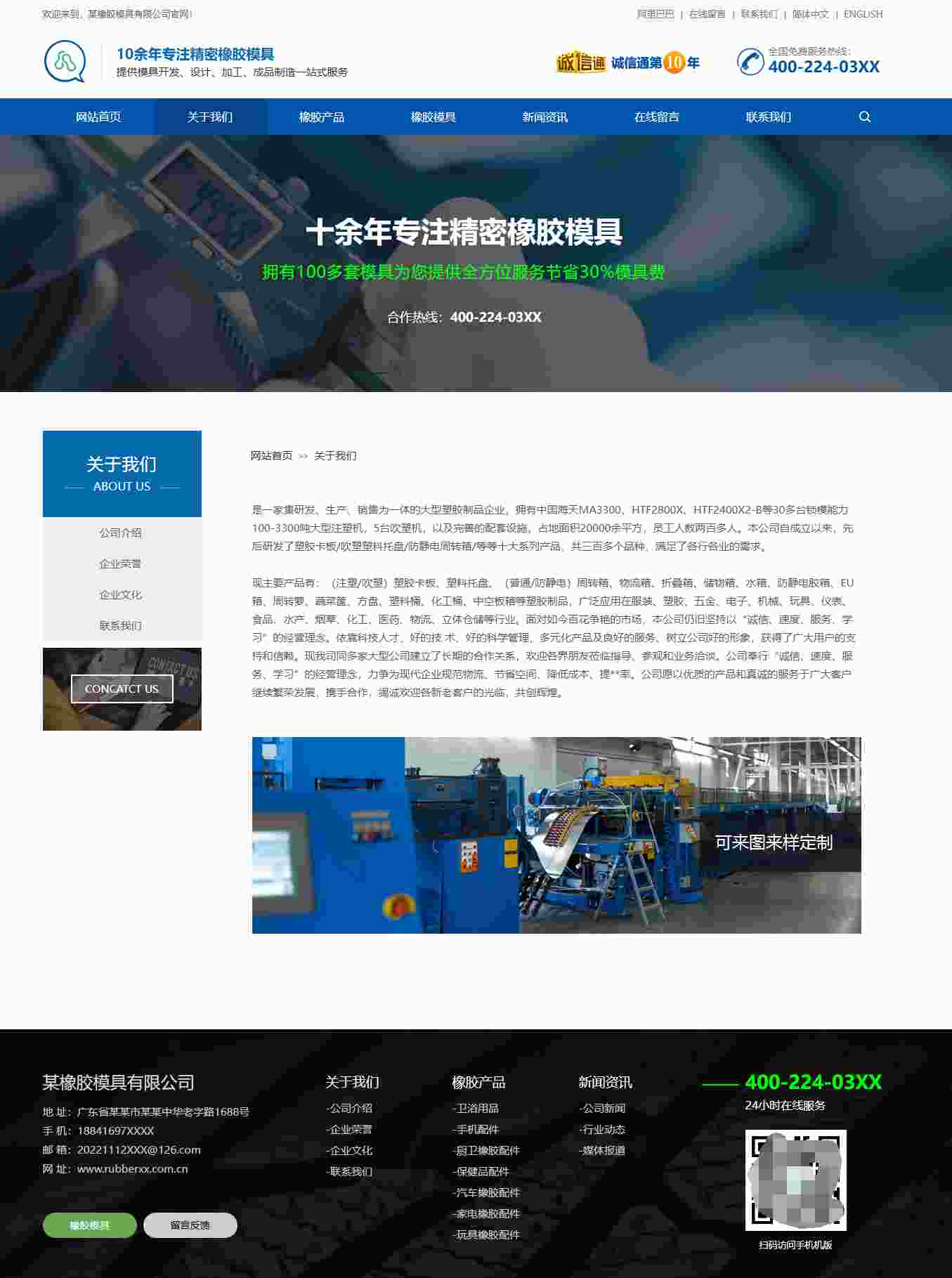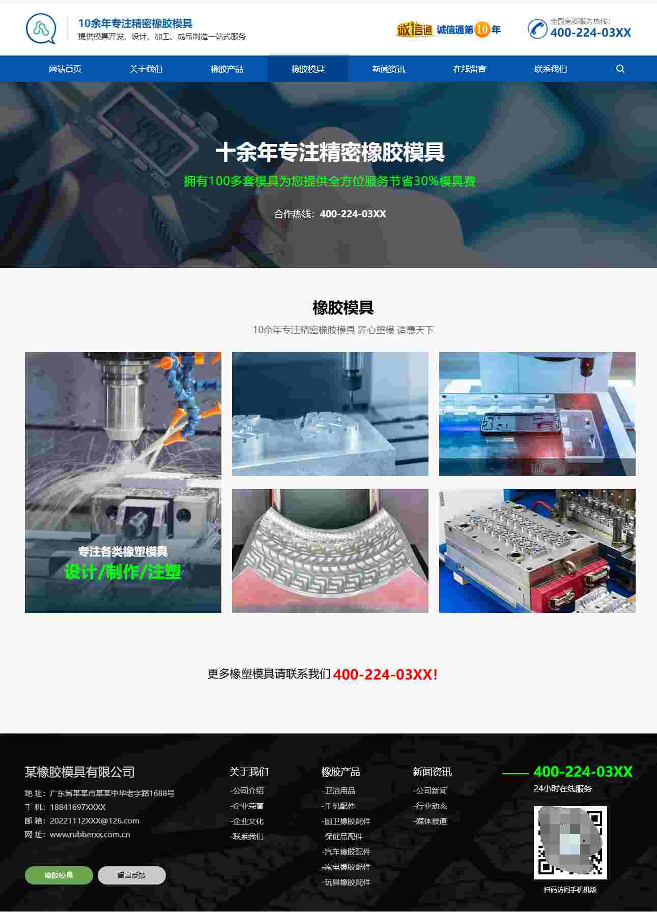 html橡胶模具网站模板 蓝色响应式自适应H5摸具工厂网站模板
