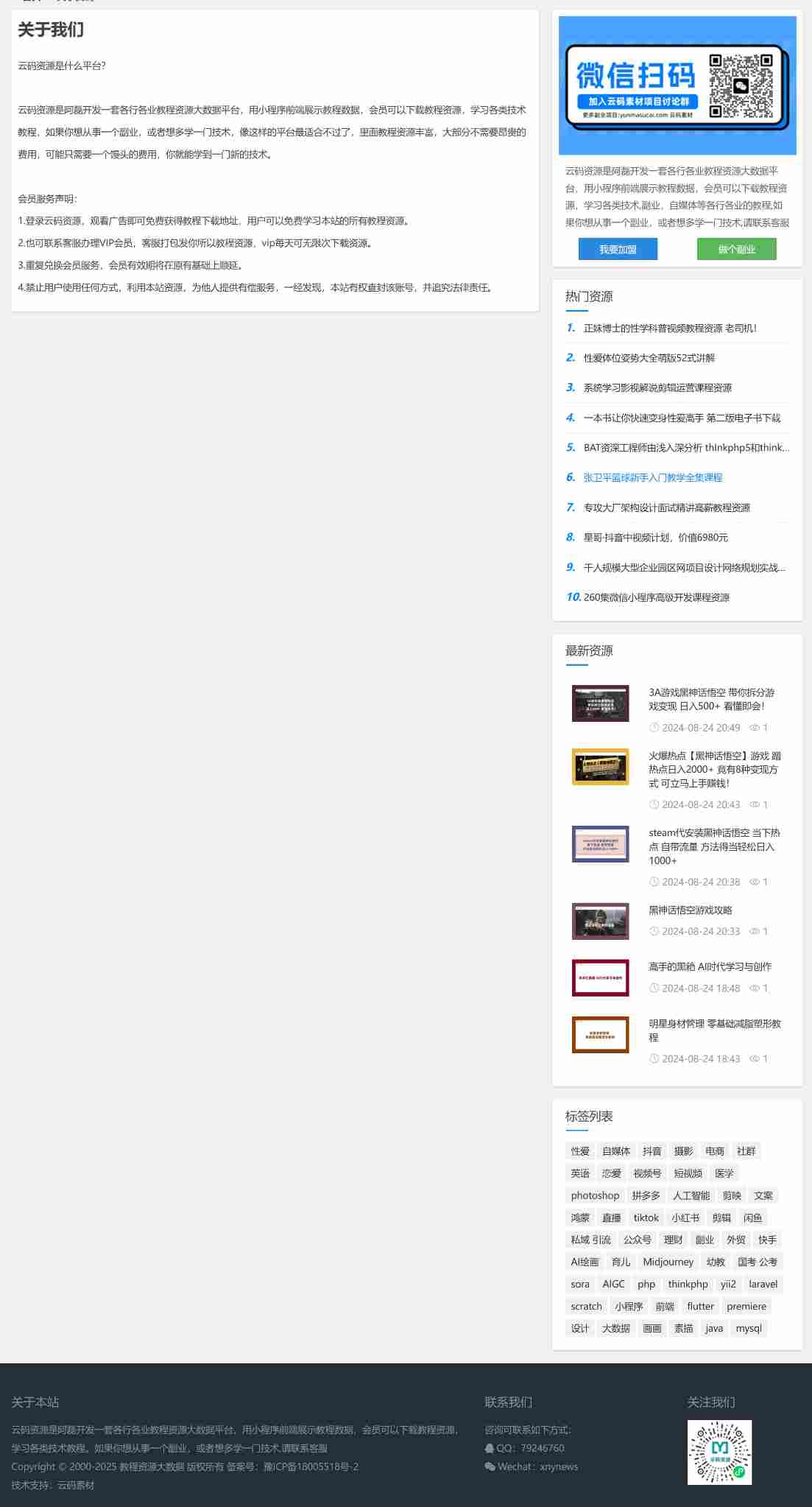 云码素材也在使用这套模板开发了一个素材下载的资源站。