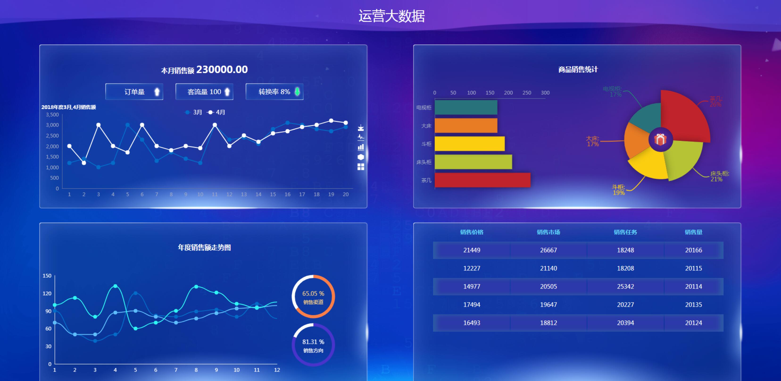 简单的echarts 销售运营可视化数据平台网页模板,可以切换图形样式为柱状图等,科技、星空背景数据可视化后台管理页面,大数据统计后台首页,数据概览页面、后台管理、echarts、动态数字增长、css3循环滚动