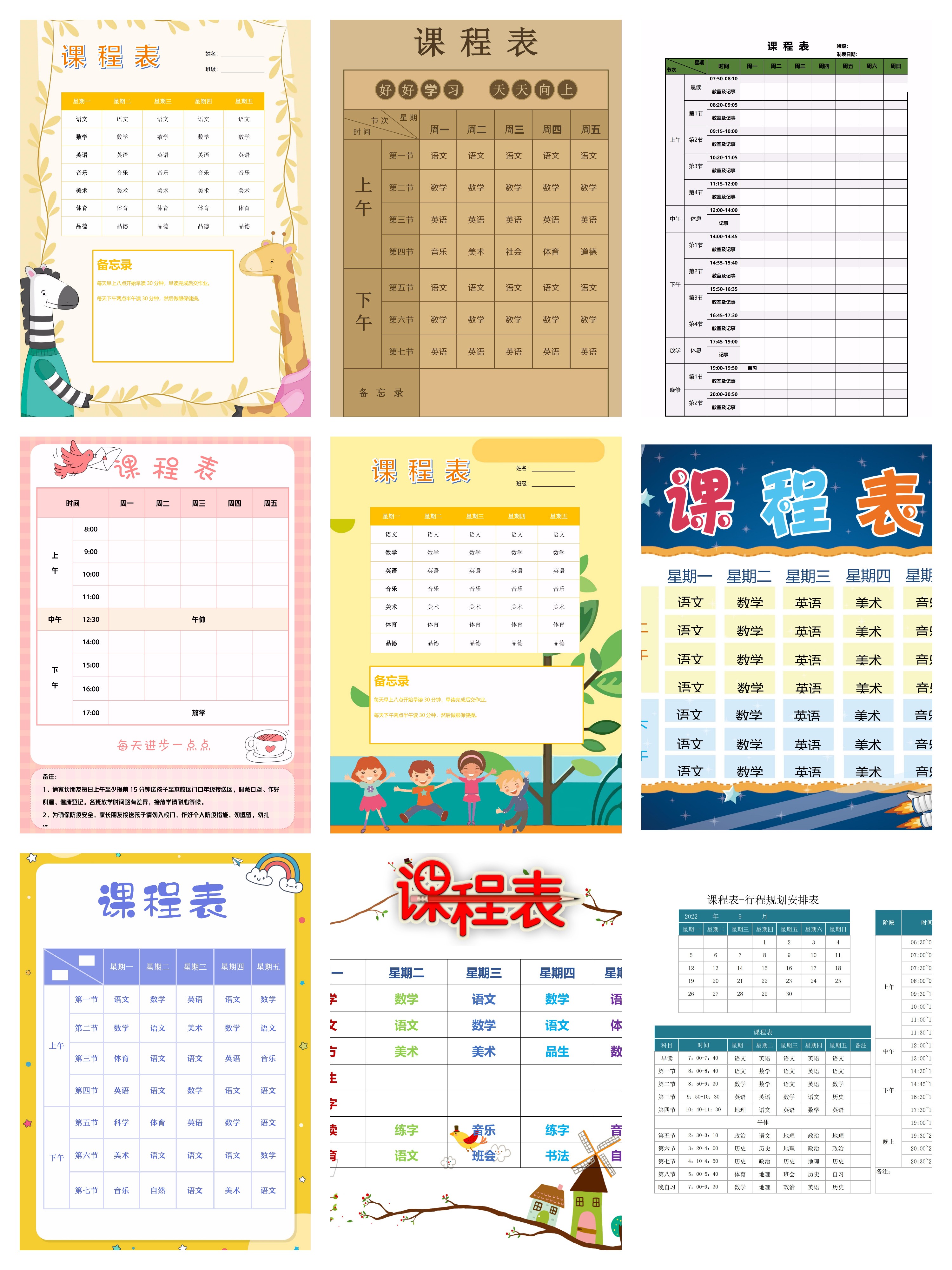 课程表模板资源免费下载 小孩新学期开学了必备之