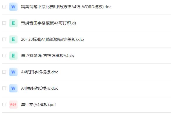 练字:田字格、九宫格、米字格、回字格Excel版本免费下载