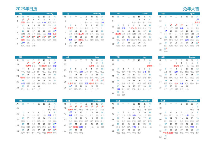 2023年日历表带农历/节假日下载 A3大小横向+纵向 Excel+PDF格式