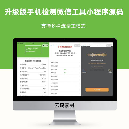 升级版手机检测微信工具小程序源码 支持多种流量主模式