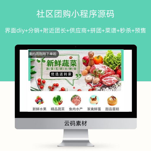 社区团购小程序源码+界面diy+分销+附近团长+供应商+拼团+菜谱+秒杀+预售+配送+直播