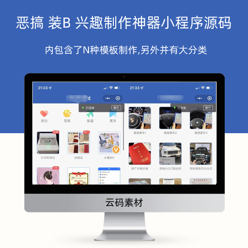 炫酷恶搞 装B 兴趣强大的制作神器小程序源码 支持多种流量主模式
