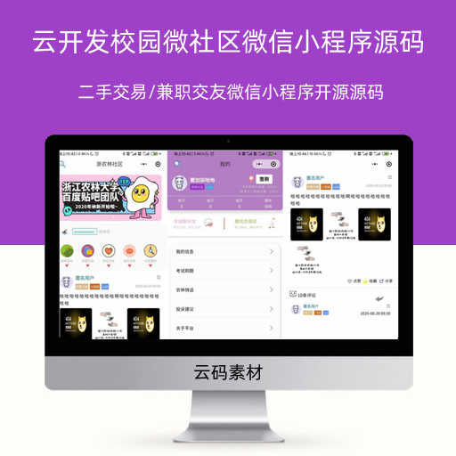 云开发校园微社区微信小程序源码/二手交易/兼职交友微信小程序开源源码