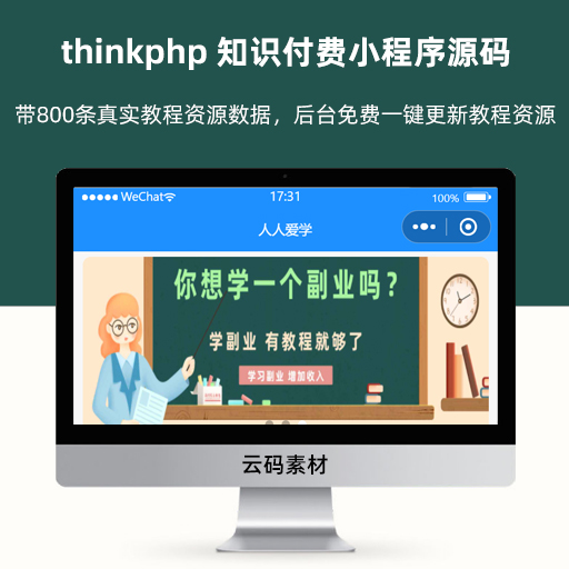 thinkphp 知识付费小程序源码 后台免费一键更新教程资源