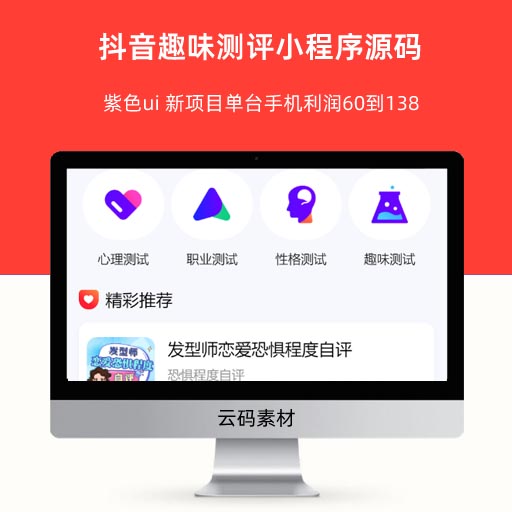 抖音趣味测评小程序源码 紫色ui 新项目单台手机利润60到138