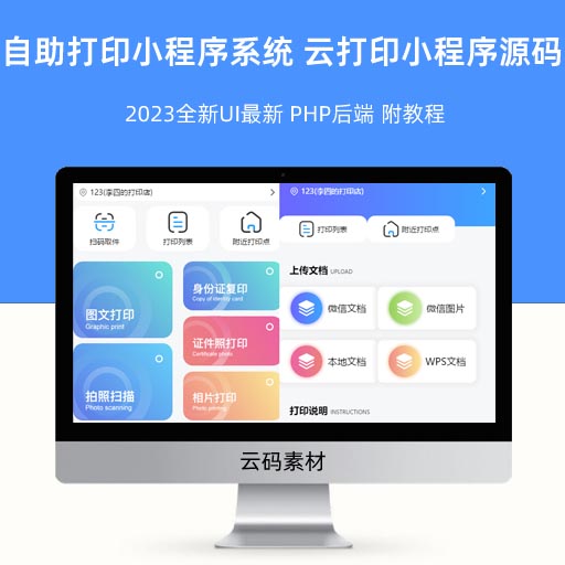 自助打印小程序系统 云打印小程序源码 2023全新UI最新 PHP后端 附教程