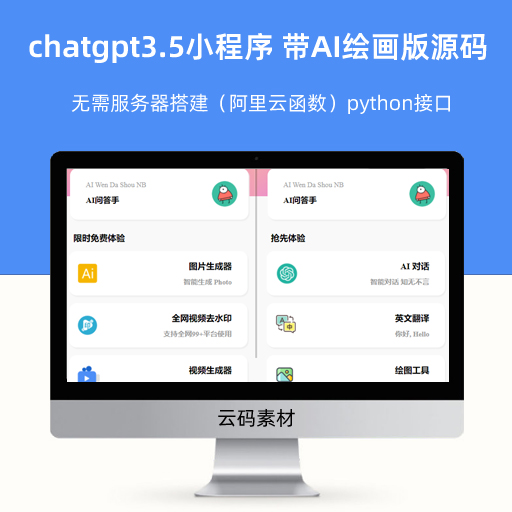 chatgpt3.5小程序 带AI绘画版源码 无需服务器搭建(阿里云函数)python接口