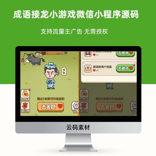 成语接龙小游戏微信小程序源码 支持流量主广告 无需授权