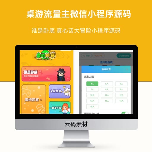 桌游流量主微信小程序源码 谁是卧底 真心话大冒险小程序源码