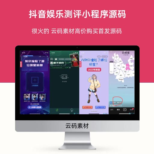 抖音娱乐测评小程序源码 很火的 云码素材高价购买首发源码