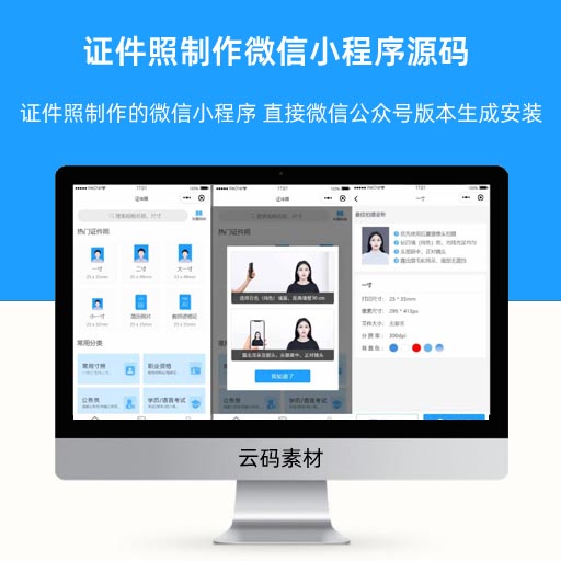 证件照制作微信小程序源码 证件照制作的微信小程序 里面也支持直接微信公众号版本生成安装