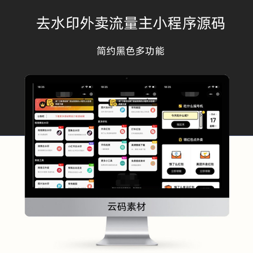 去水印外卖流量主小程序源码 简约黑色多功能