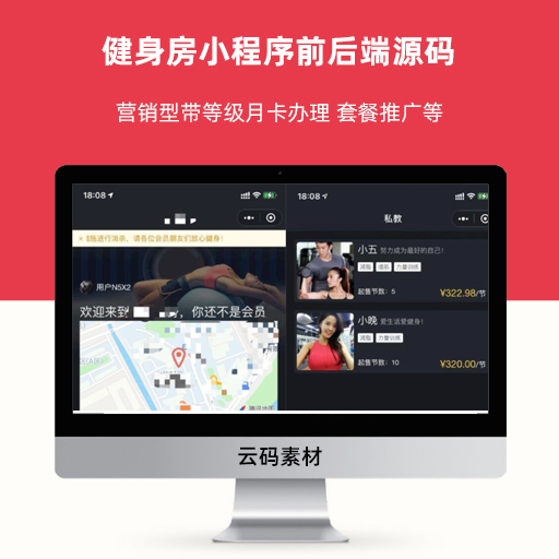 健身房小程序前后端源码 营销型带等级月卡办理 套餐推广等