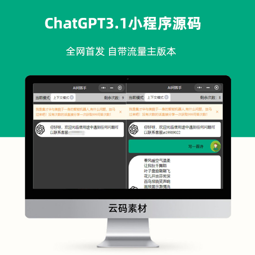 ChatGPT3.1小程序源码 全网首发 自带流量主版本