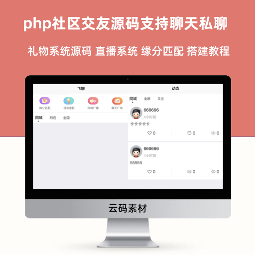 php社区交友源码支持聊天私聊 礼物系统源码 直播系统 缘分匹配 搭建教程
