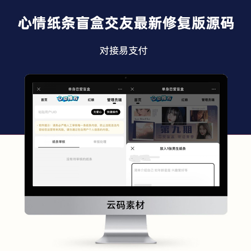 心情纸条盲盒交友最新修复版源码 对接易支付