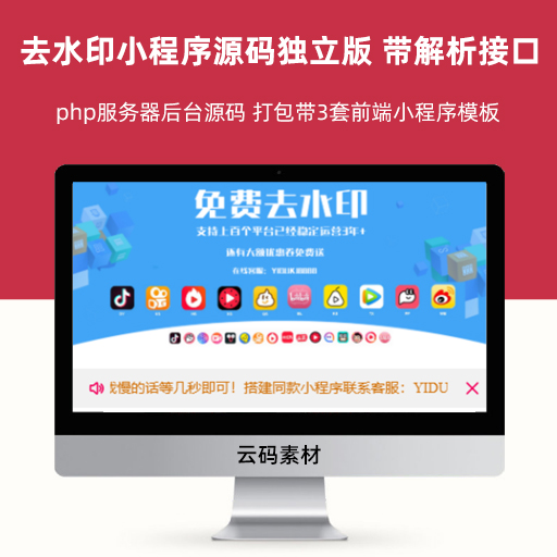 去水印小程序源码独立版 带解析接口 php服务器后台源码 打包带3套前端小程序模板