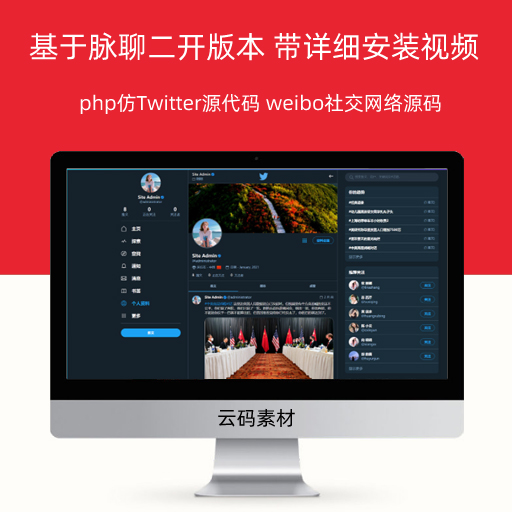 php仿Twitter源代码 weibo社交网络源码 基于脉聊二开版本 带详细安装视频