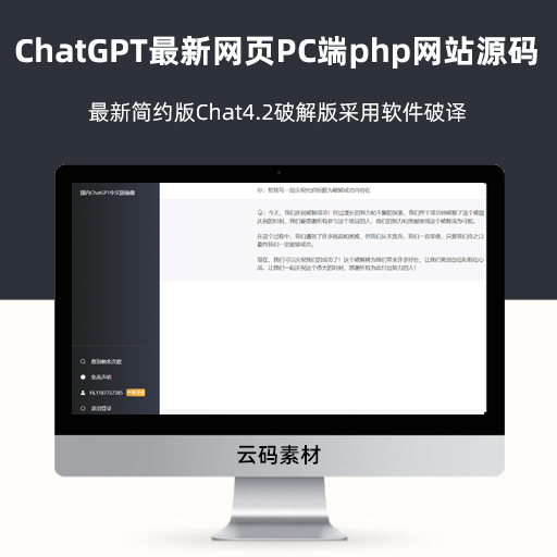 ChatGPT网页版本源码 带三方支付 php原生开发的chatgpt源码
