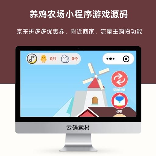 养鸡农场小程序游戏源码 京东拼多多优惠券、附近商家、流量主购物功能