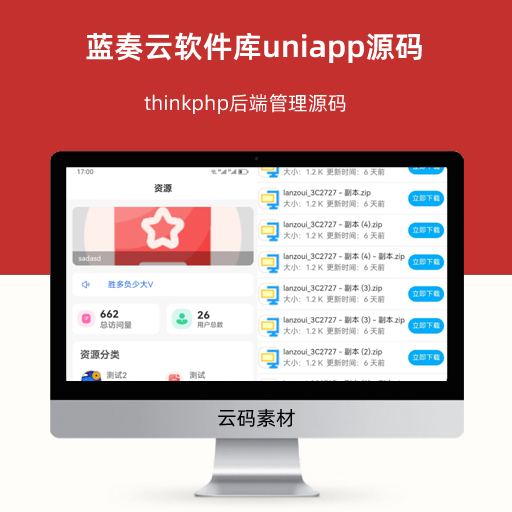 蓝奏云软件库uniapp源码 thinkphp后端管理源码