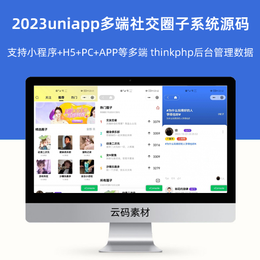 2023最新uniapp多端社交圈子系统源码 陌生人社交 即时聊天通信 支持小程序+H5+PC+APP等多端 thinkphp后台管理数据