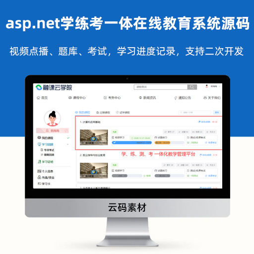 asp.net学练考一体在线教育系统源码:视频点播、题库、考试,学习进度记录,支持二次开发